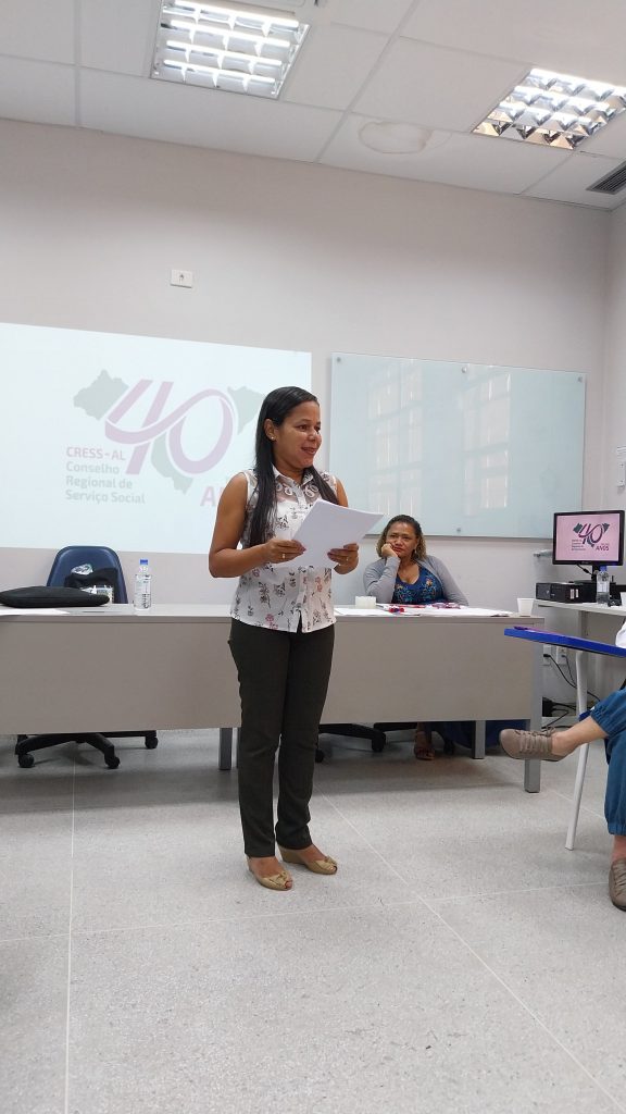 Segundo a professora Margarete, é fundamental a criação de protocolos de trabalho que orientem as atividades das/dos profissionais em Unidades de Pronto Atendimento. “A adesão das assistentes sociais a este evento tem um duplo sentido: demonstra a confiança da categoria no seu conselho e expressa a necessidade concreta de estudos, aprofundamentos, reflexões sobre a prática”, destacou. Além disso, a professora evidenciou o trabalho da COFI para além de uma simples fiscalização. “A Comissão de Orientação e Fiscalização do CRESS-AL se coloca numa posição de escuta qualificada a estes/as profissionais, de acolhimento as suas necessidades e de uma resposta aos anseios da categoria”.