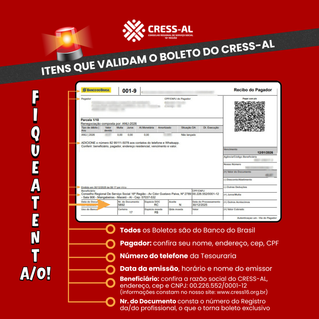 Ao receber um boleto do CRESS-AL, fique atento/a!