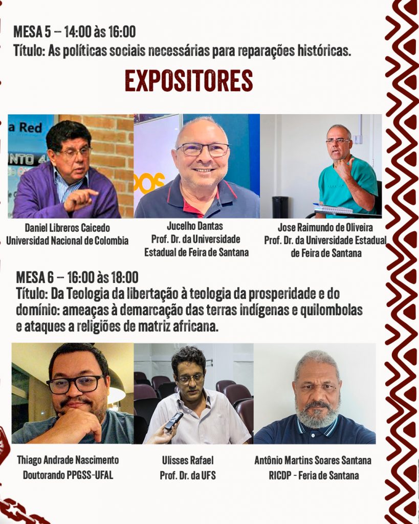 Confira as/os expositores das mesas 4, 5, 6 e 7 do grande debate sobre As Experiências de Resistência à Escravidão e ao Neoliberalismo e em Defesa dos Direitos Sociais!