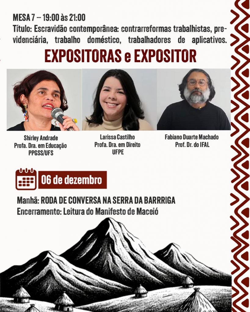 Confira as/os expositores das mesas 4, 5, 6 e 7 do grande debate sobre As Experiências de Resistência à Escravidão e ao Neoliberalismo e em Defesa dos Direitos Sociais!