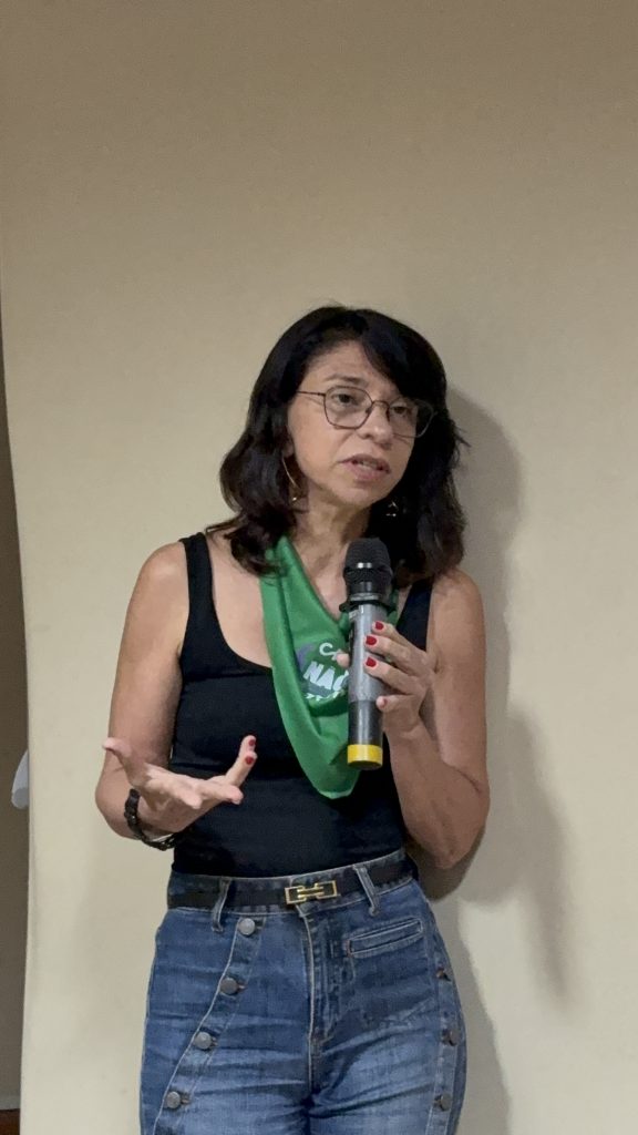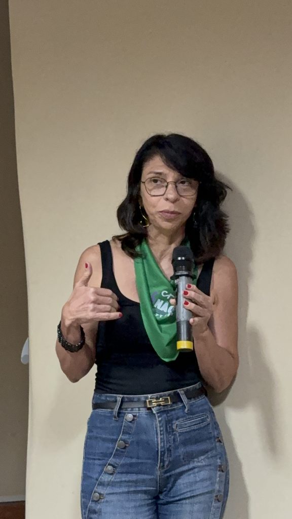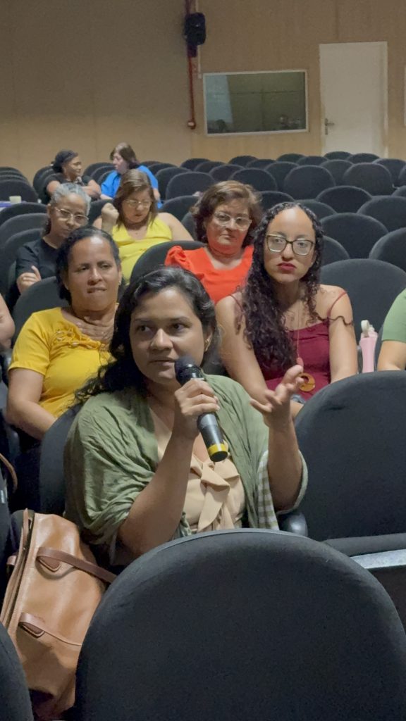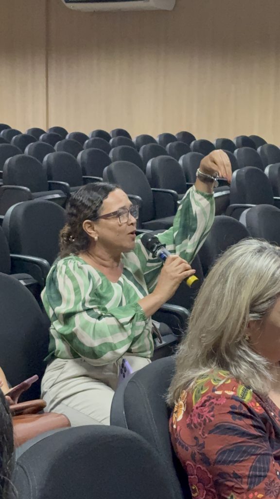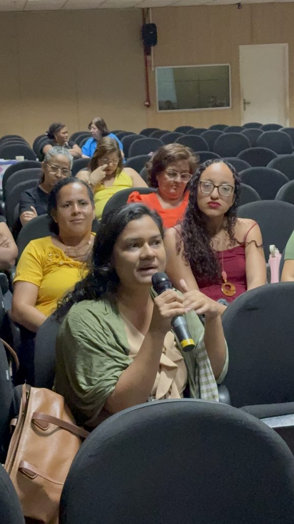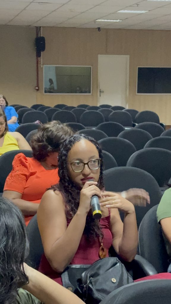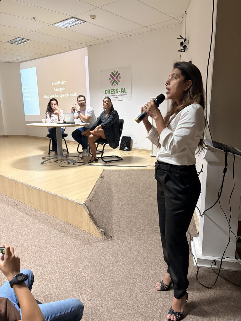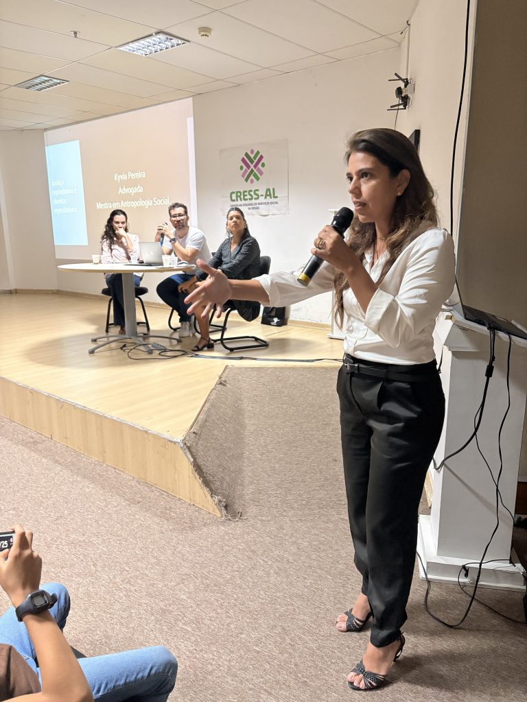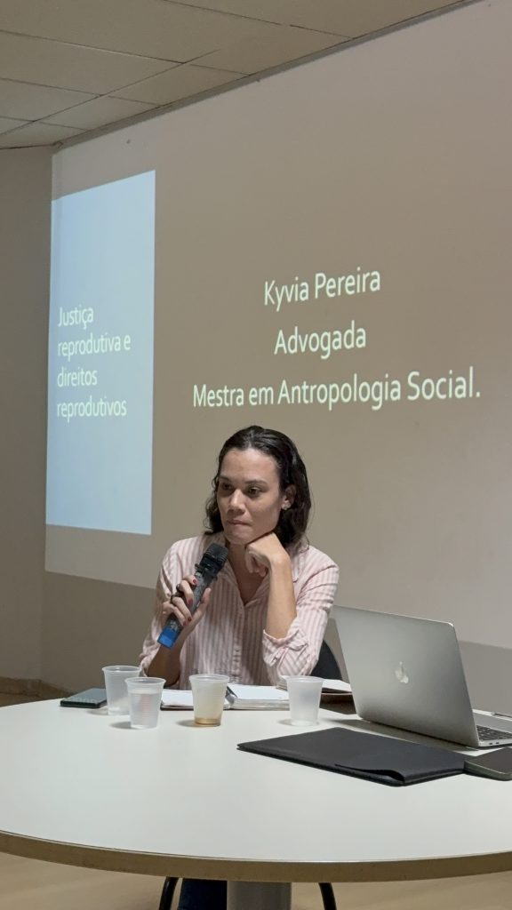 A atividade contou também com a participação da professora Kyvia Pereira, que trouxe reflexões sobre Justiça Reprodutiva e Direitos Reprodutivos. Em sua fala, Kyvia destacou a importância de compreender a justiça reprodutiva para além dos direitos sexuais e reprodutivos tradicionais, afirmando que “enquanto os direitos reprodutivos estão ligados à dignidade e à decisão de ter ou não filhos, a justiça reprodutiva amplia esse debate ao considerar os atravessamentos de raça, classe e gênero que interferem na autonomia e na saúde reprodutiva, especialmente de grupos em situação de vulnerabilidade. É urgente que esse tema chegue a todas as áreas profissionais, para que a justiça reprodutiva seja uma realidade e não apenas uma perspectiva.” Segundo ela, a abordagem interseccional é essencial para garantir que o acesso à saúde e à autonomia reprodutiva seja efetivo e igualitário.